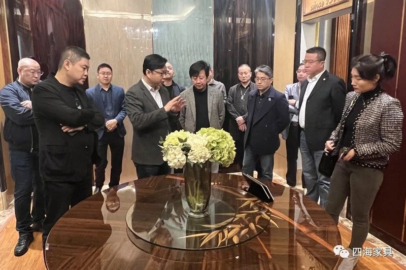 參觀過程中,公司領導向在場嘉賓傳遞工匠傳承精神和高品質生活理念,得到大家的高度認可。同時,四海家具也憑借著整體家居定制實力、工程配套服務實力,與融創、萬達、萬豪、索菲特、長隆等國內外高級酒店集團展開長期合作,全力打造高質量體驗場所及休閑空間。